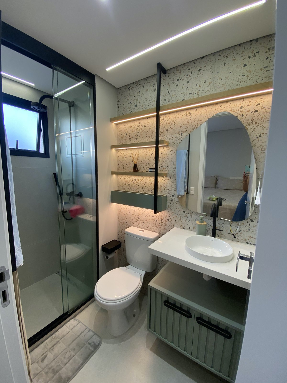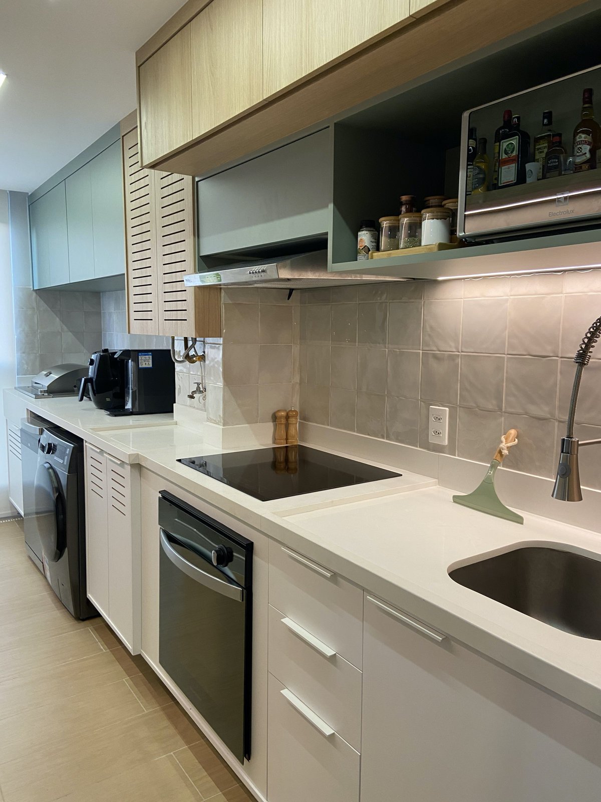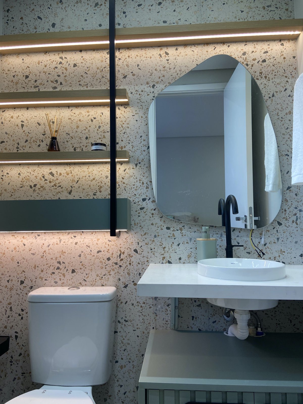 Esse foi um projeto muito especial, onde o pedido da cliente foi algo que lembrasse o estilo Japandi, então utilizamos os tons de amadeirado claro, itens em Verde e alguns pontos decorativos com bege, tudo lembrando essa cultura tão especial que é a Japonesa.