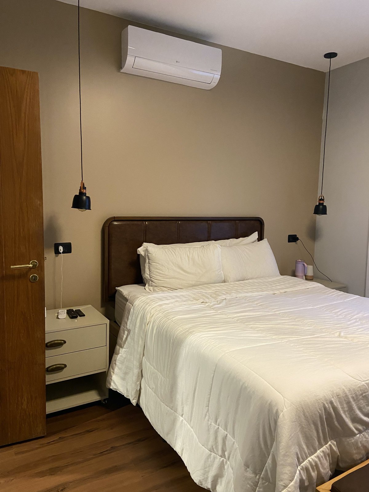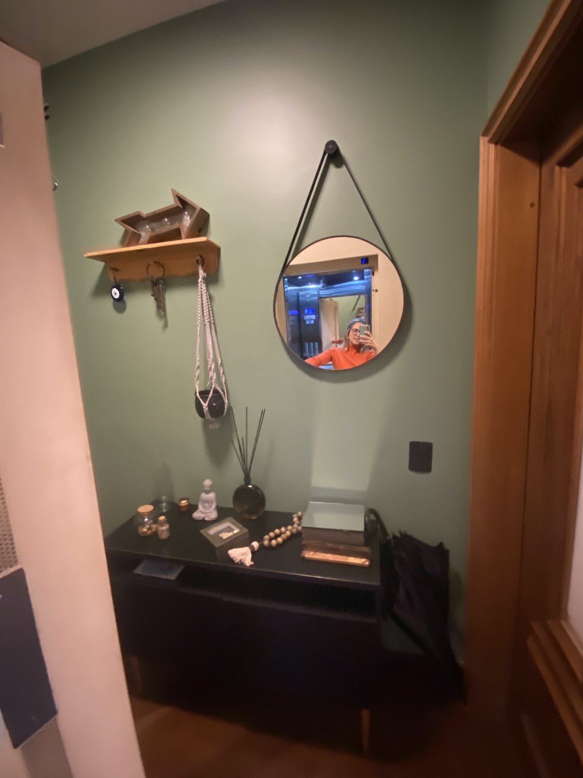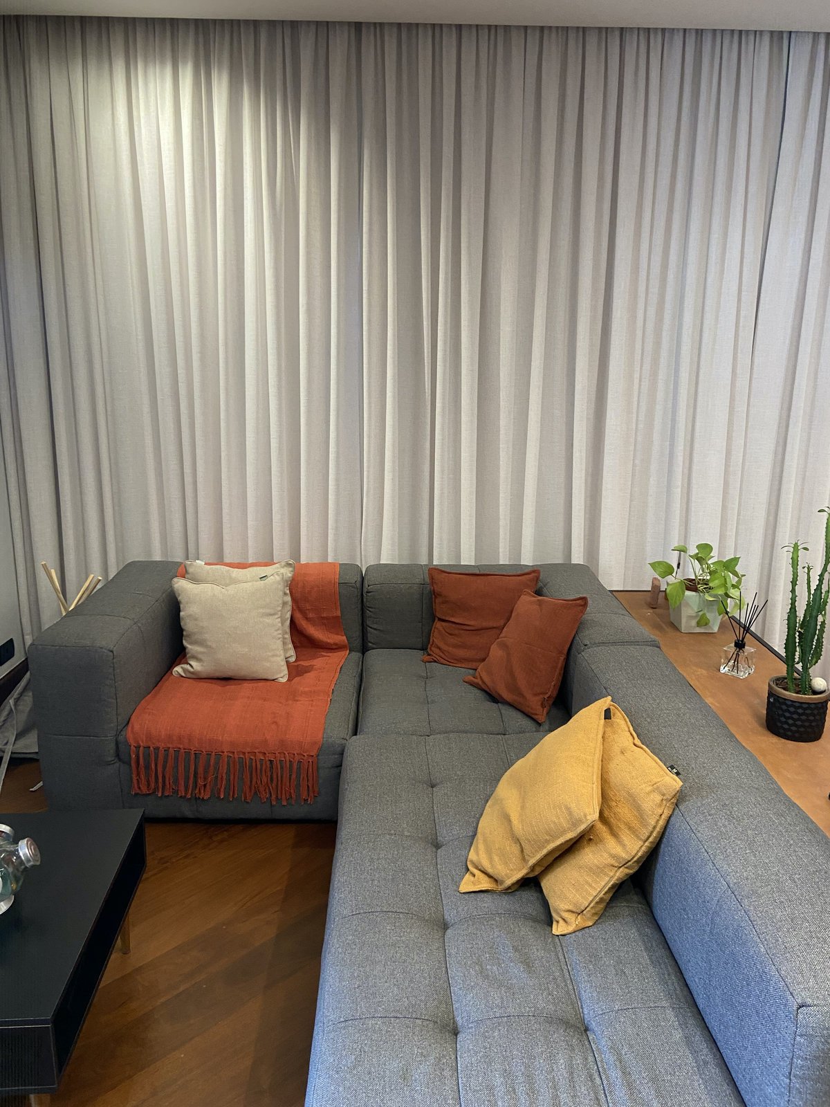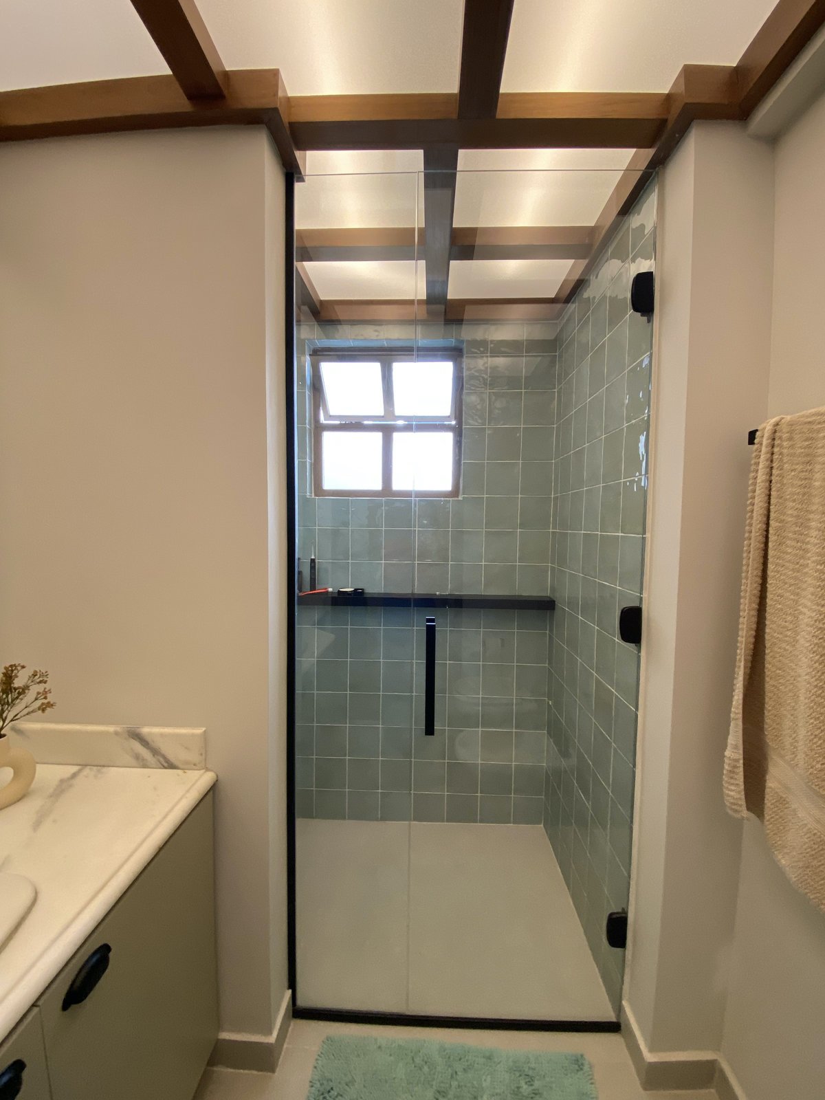 Fizemos um retrofit nesse apartamento que já tinha uma arquitetura muito legal, com ambientes muito espaçosos, e utilizamos os tons solicitados também que era o laranja e o verde e detalhes em preto, lembrando um pouco o industrial.