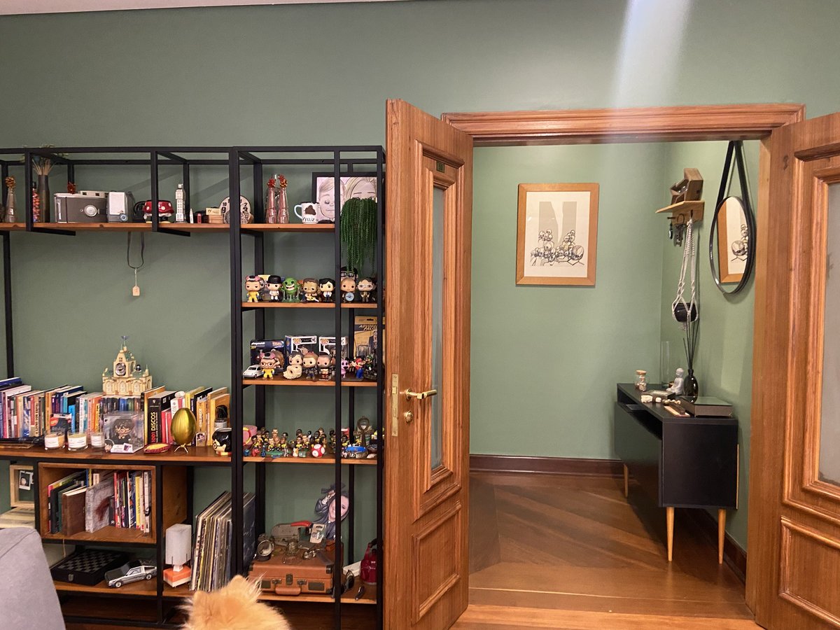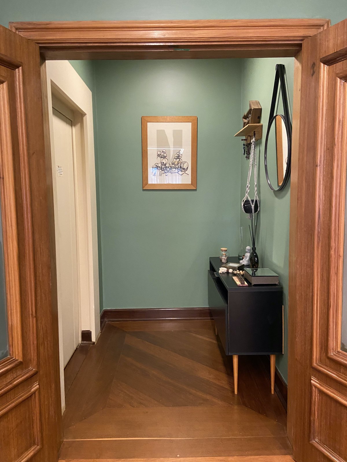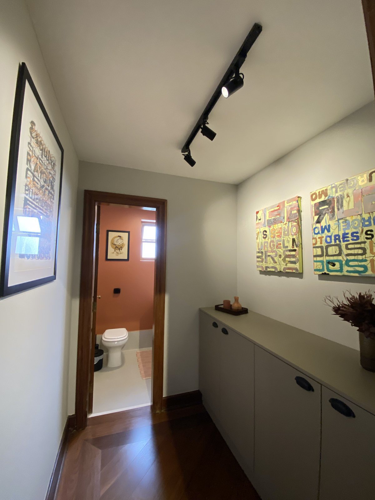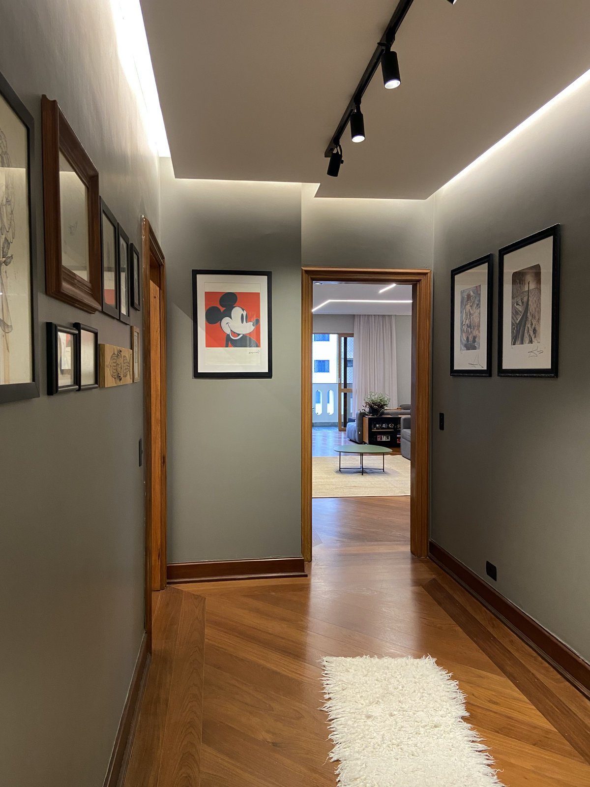 Outro pedido, foi colocar a coleção de quadros nos ambientes e o resultado foi um apartamento bem autêntico!