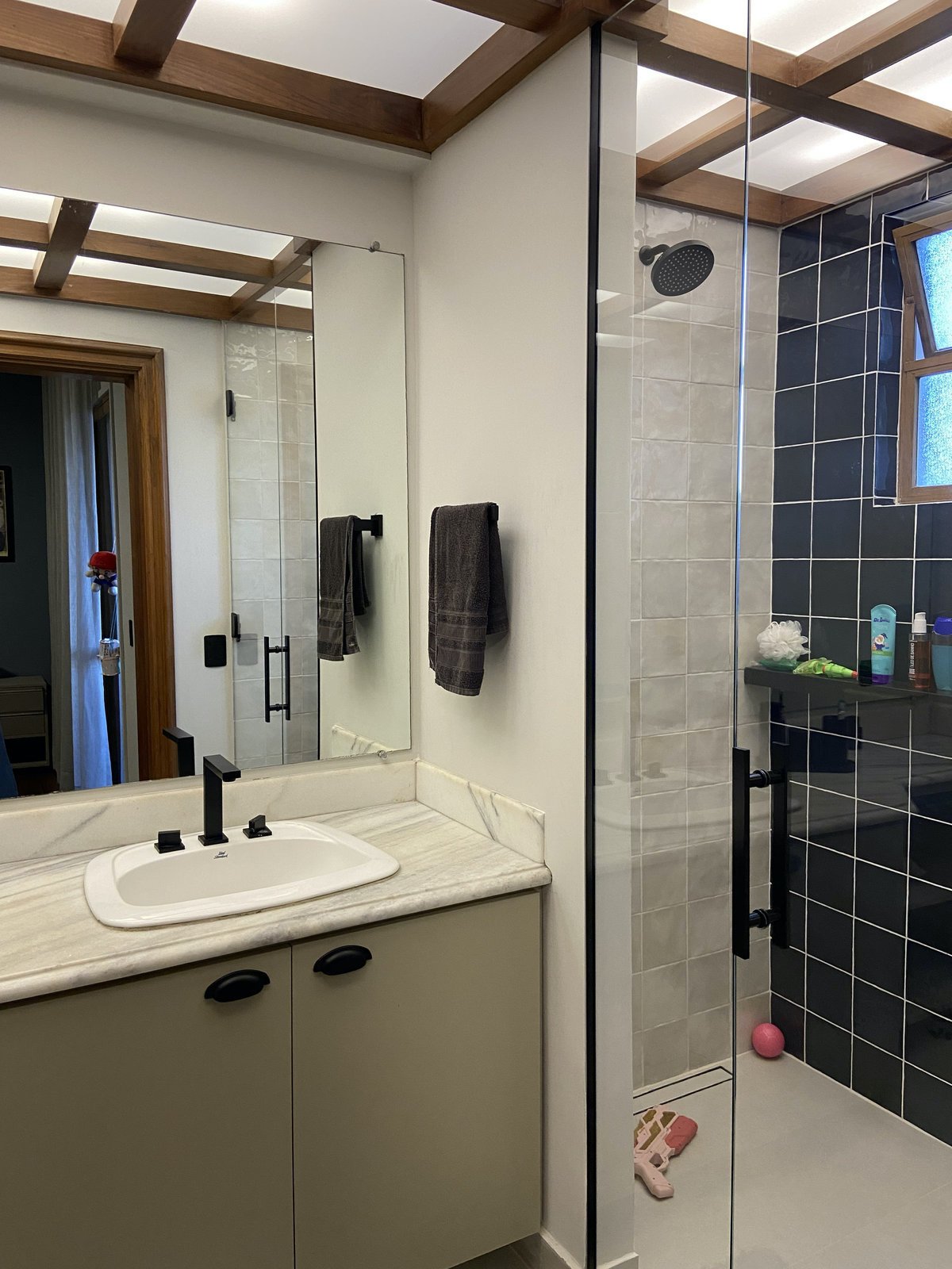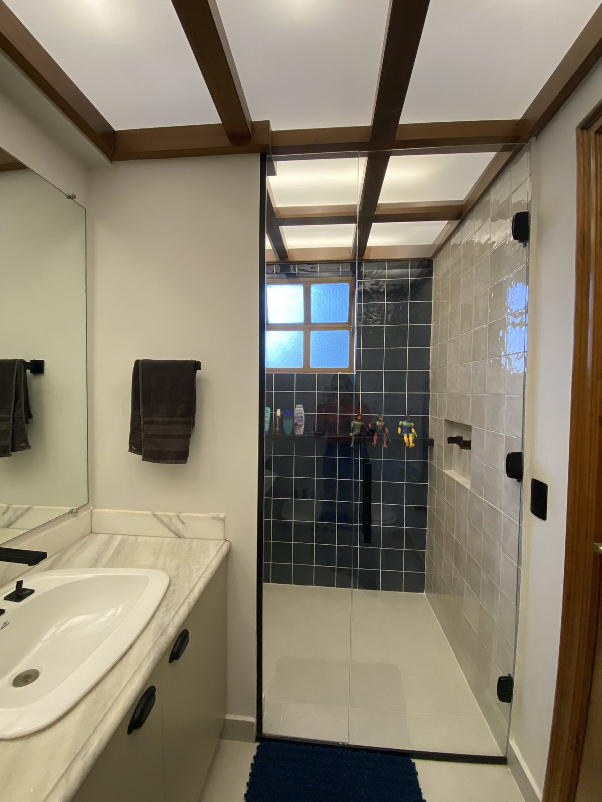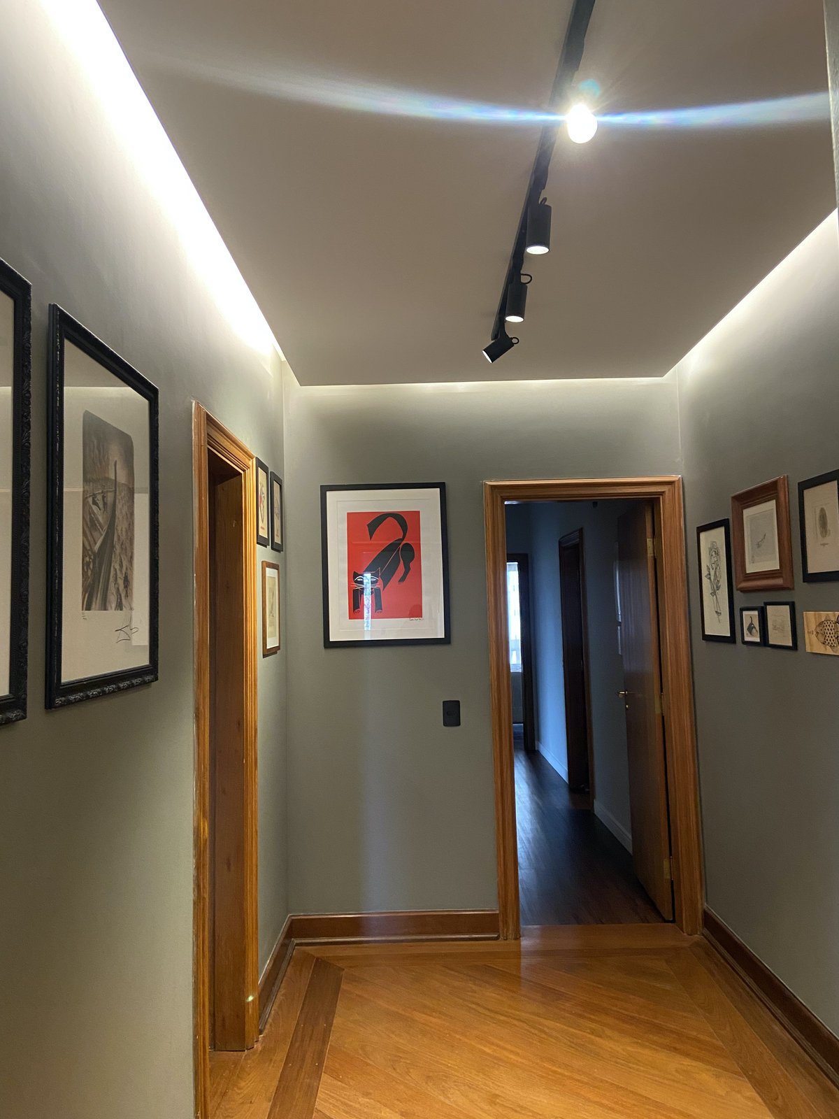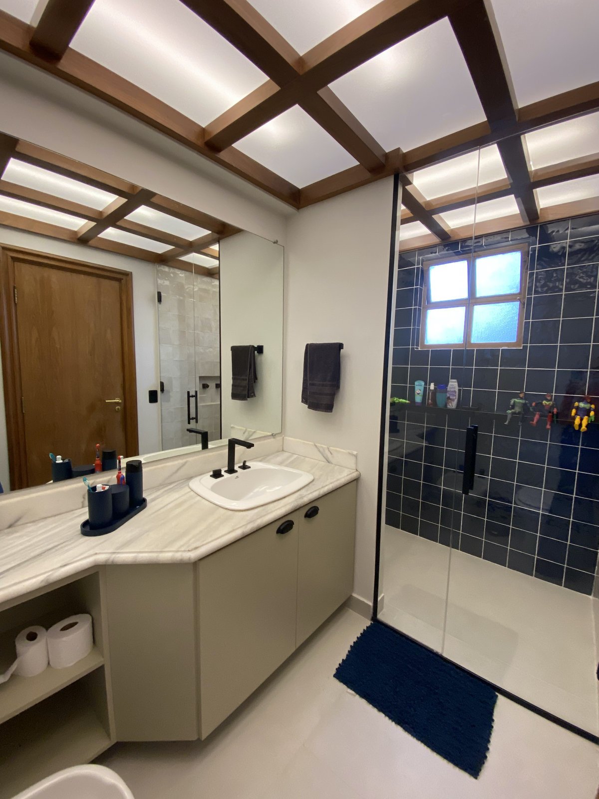Outro pedido, foi colocar a coleção de quadros nos ambientes e o resultado foi um apartamento bem autêntico!