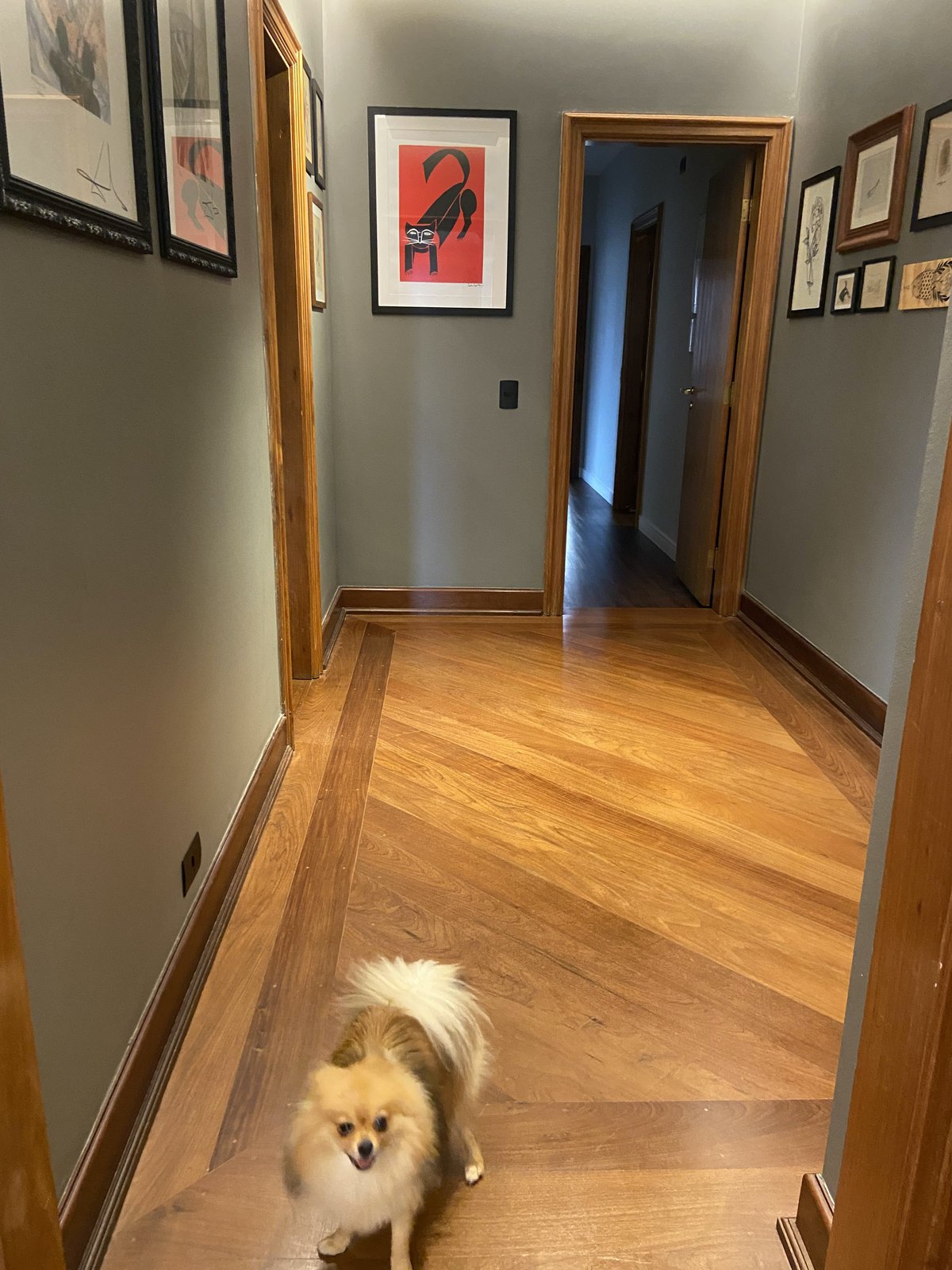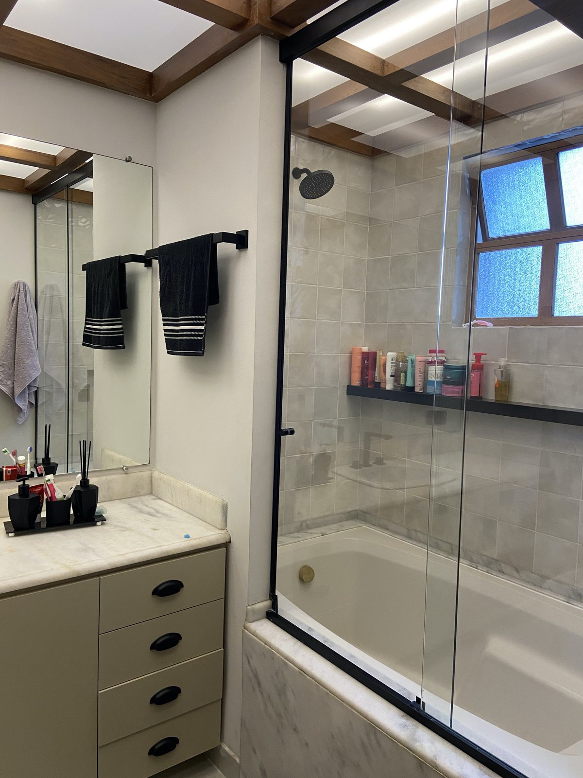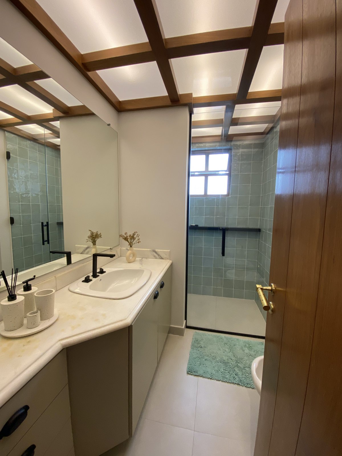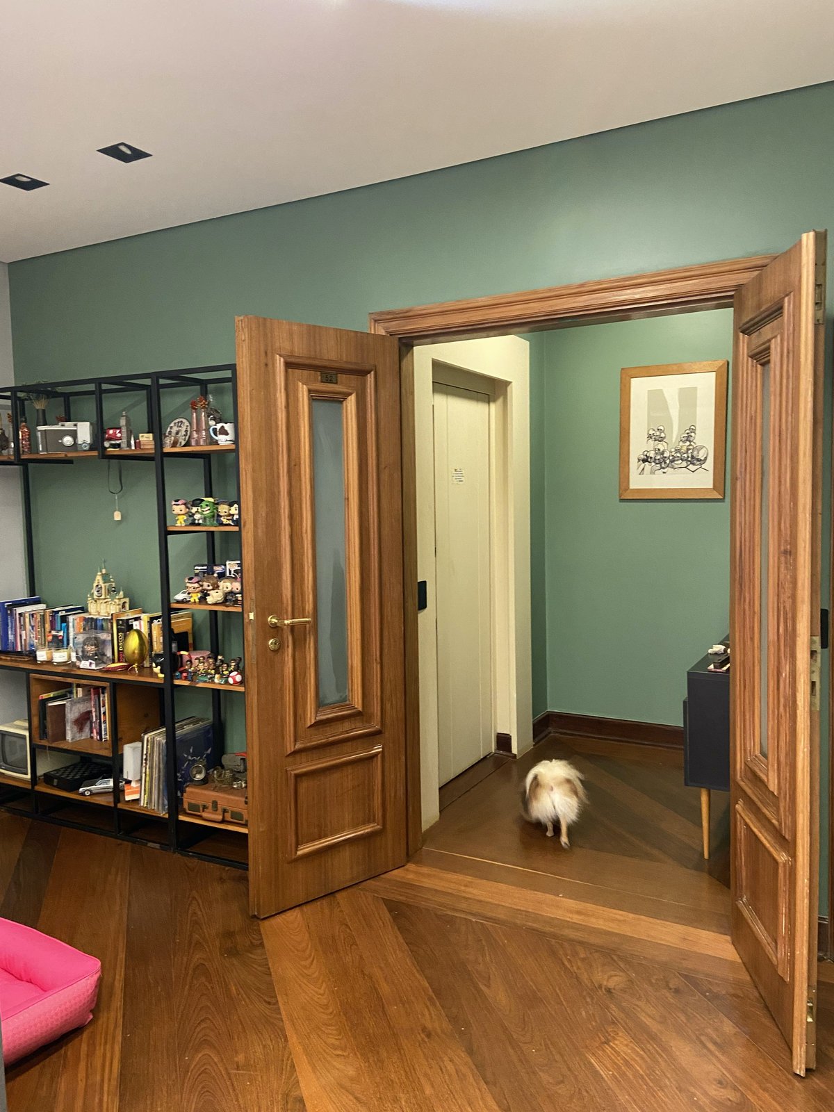 Outro pedido, foi colocar a coleção de quadros nos ambientes e o resultado foi um apartamento bem autêntico!
